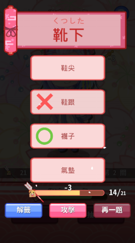 日語漢字大挑戰遊戲畫面