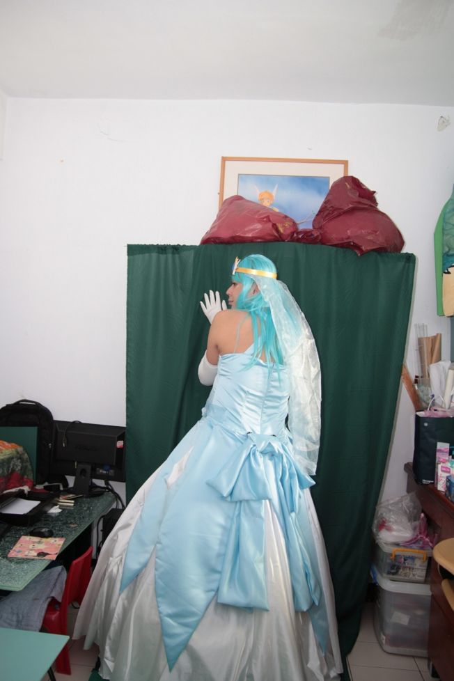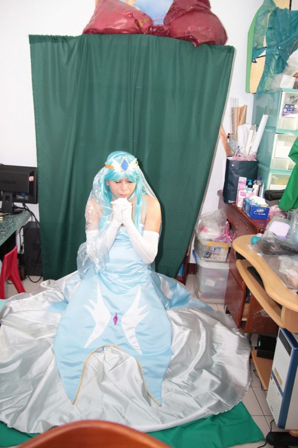 這隻是前1~2個月再重製的了,稍微把腰身拉高 亮緞換成比較霧點的新娘緞。