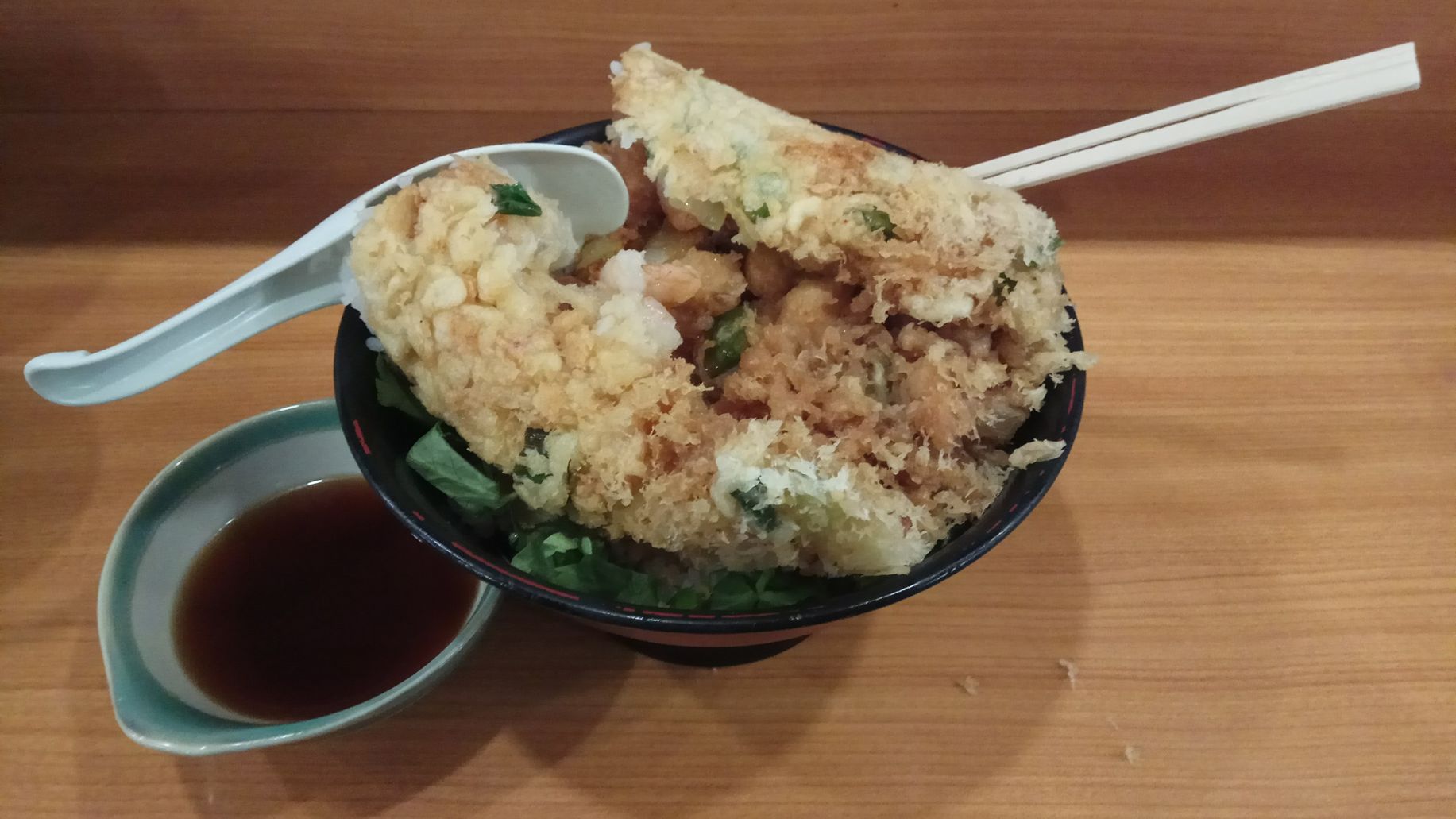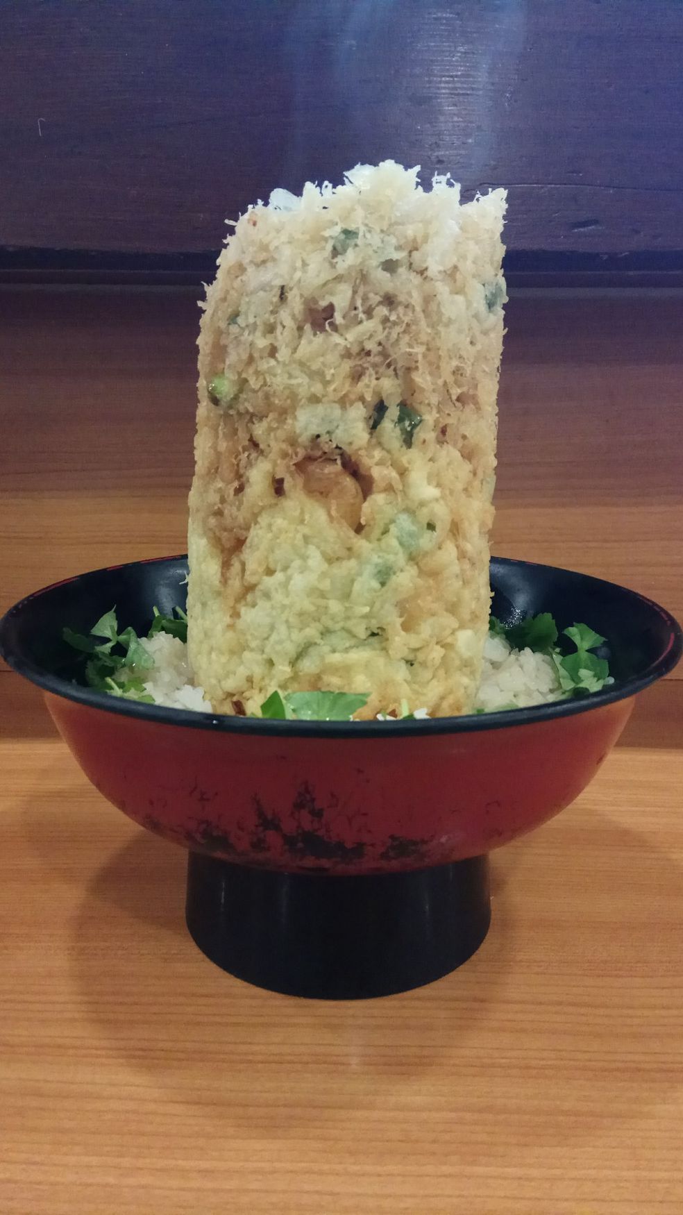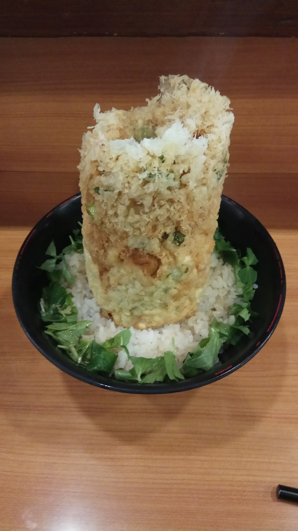 點了傳說中的炸海鮮柱,真的是超大一根,味道也很香(話說雖然碗裡滿滿的香菜,但日本香菜沒台灣的重)