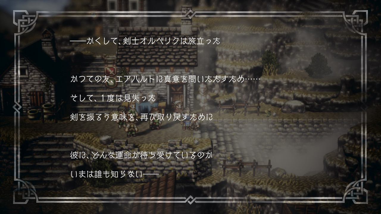 選擇完角色的第一個畫面,敘述旁白並不是以對話框帶過,而是以整個畫面的方式來呈現.
