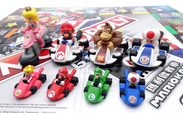 這系列的《地產大亨》還是有其優點,最大的好處是:遊戲時間縮短!沒錯,傳統的《地產大亨》很容易歹戲拖棚,總是要玩很久才能分出勝負~但這系列最大的優勢,就是有明確的遊戲結束時間~而且就算破產還是可以死皮賴臉繼續玩~沒有人會中途離開遊戲(這個我喜歡)。以這次的《地產大亨 瑪利歐賽車》為例,四位玩家的話,平均只要每人繞地圖兩圈遊戲就結束了,在台灣每個人都是《地產大亨》老手,相信大家對繞兩圈應該很有概念。