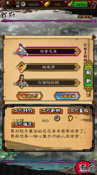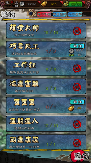 隨著等級的提升也會開放不同的遊戲玩法,15等可以開啟凸碧山莊、18級開啟出遊系統、20級開啟怡紅院,都可以獲得道具或是培養卡牌的好感度。另外遊戲中也有日常任務的設計,每天完成日常任務可以獲得大量的經驗與獎勵。