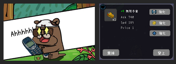 玩家可以透過商店或是任務,來得到不同的飾品以及服裝。每個裝備的攻速都不相同,玩家可以自由組合出喜歡的造型。