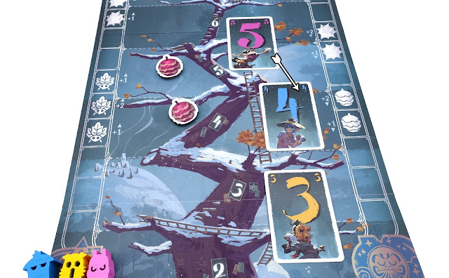 ▲接著所有人面朝下出一張牌,然後再一起打開,打開之後會進行結算,建議大家結算的時候把卡片根據數字放到樹上,然後會從最高的位置開始往下進行結算。以下我舉兩種結算的實例給大家看: