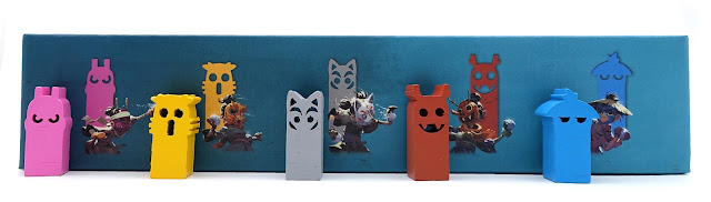 ▲遊戲中的角色米寶霹靂無敵有誠意,除了形狀跟顏色不同以外,挖的洞也不同,我把它們跟盒子上五個種族的圖案擺在一起拍,應該多少可以感受出他們的用心。