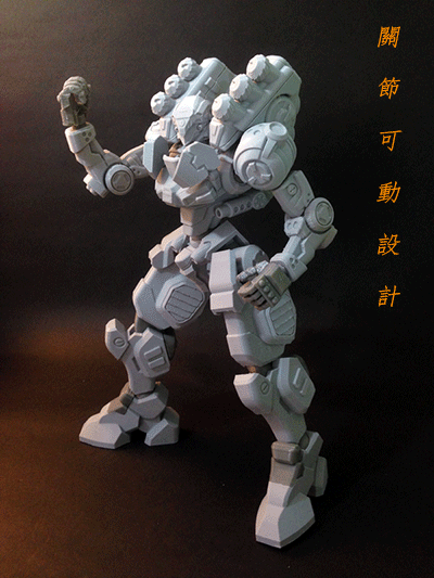 尺寸加大,更顯霸氣。而art-on 立體創藝市集的製作人阿藤,在設計上仍講究能讓模型「活起來」,機甲的全身關節都可動,可靈活擺出任何想要的動作。
