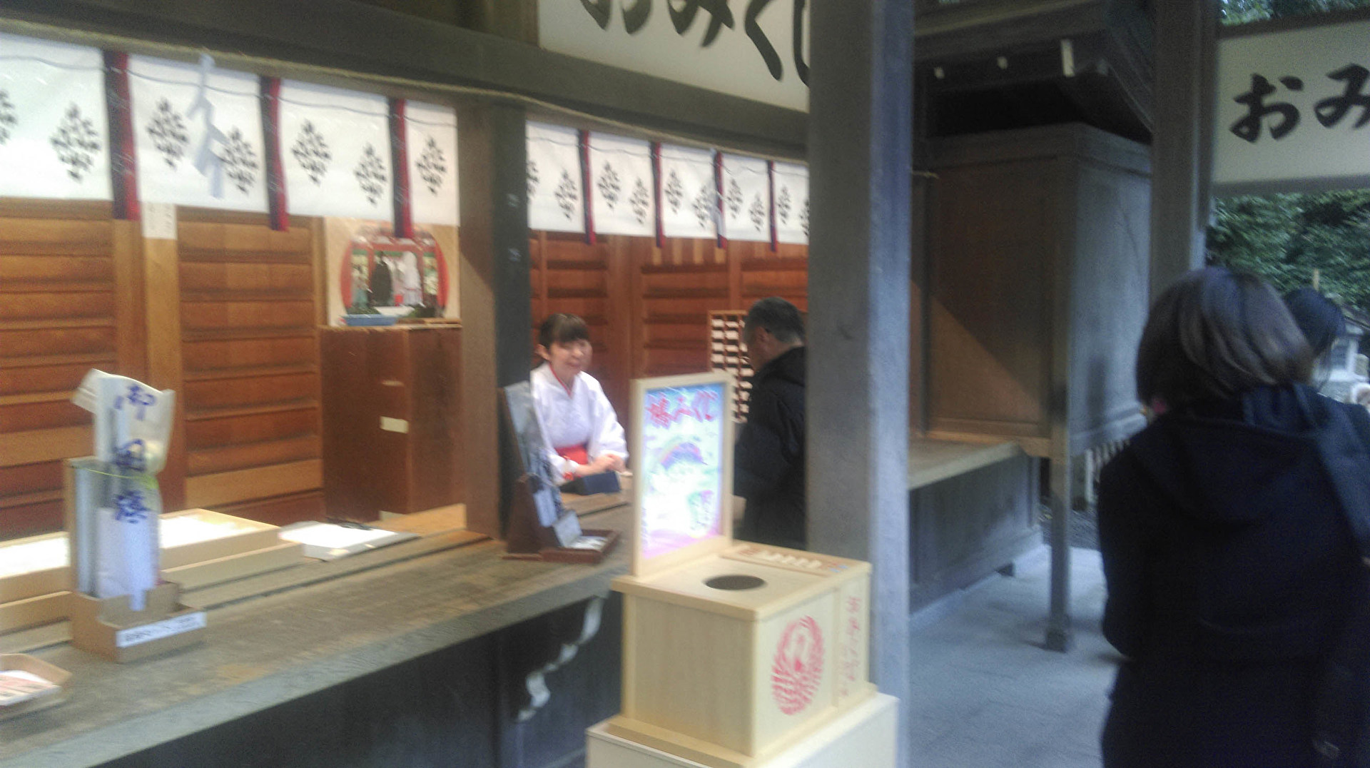 旁邊有巫女在賣護身符