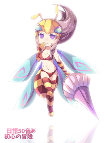 日語50音-初心の冒險》中,戰鬥都要回答與日語50音相關的題目,而女王蜂在戰鬥中,對應的是日語50音中羅馬拼音的相關考題,玩家操控女王蜂並發動攻擊技能時,須回答4題關於羅馬拼音的測驗,並依照測驗時的回答速度、正確率來增加技能傷害,且女王蜂擁有尊貴的皇后身份,不容許魔物過於靠近自己,因此當魔物的行動條越接近終點時,可對其造成的傷害更加可觀!