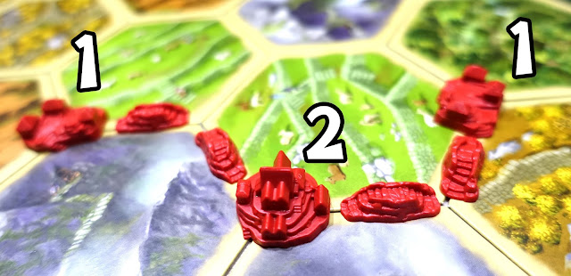 *請注意它有限制,必須是【2座村莊+1座城市】或是【4座村莊】這樣的組合來拿四分。不可以用【2座城市】的方式來獲得四分。(請參考上圖)