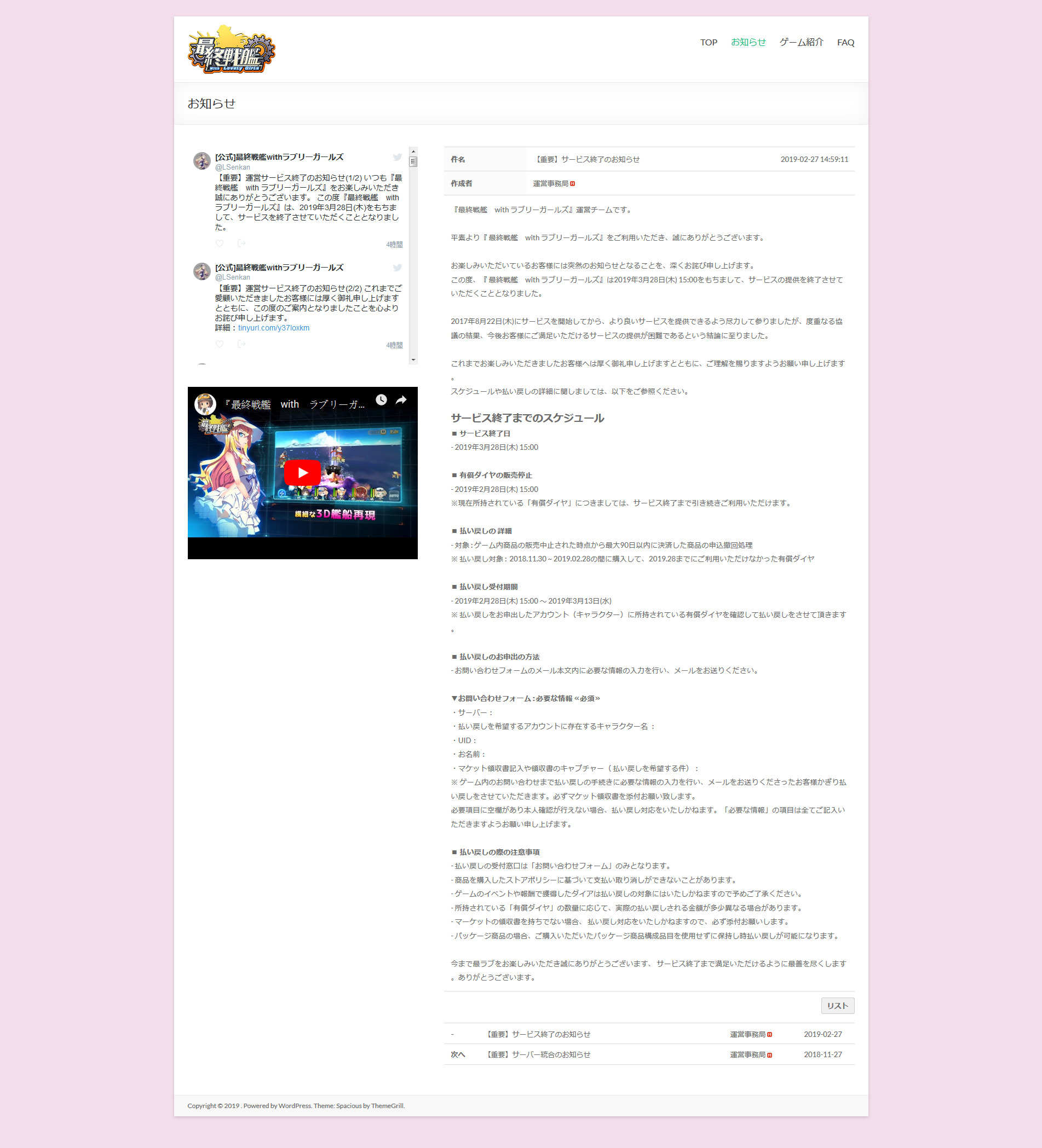 《請提》日服官網公告(需翻牆到日本IP)由中國成都金角網路科技所製作的艦娘手遊《請命令!提督Sama》(最終戦艦withラブリーガールズ)(以下簡稱《請提》),根據經營日本伺服器的韓國代理商Gamepub,在官網和官方推特上發布的公告表示,