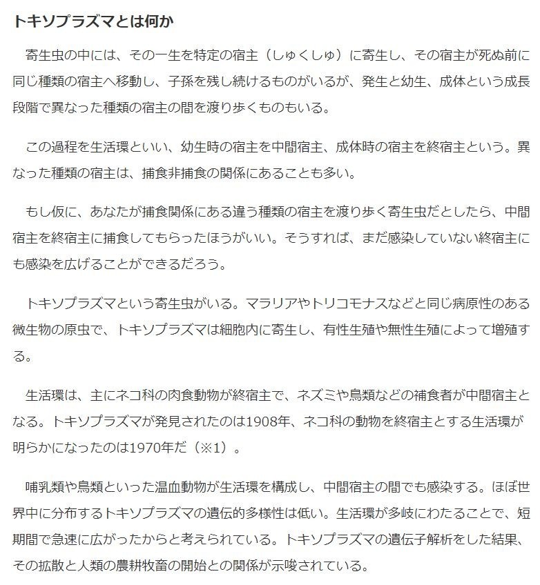 ※10:Jaroslav Flegr, "Effects of Toxoplasma on Human Behavior." Schizophrenia Bulletion, Vol.33, No.3, 757-760, 2007