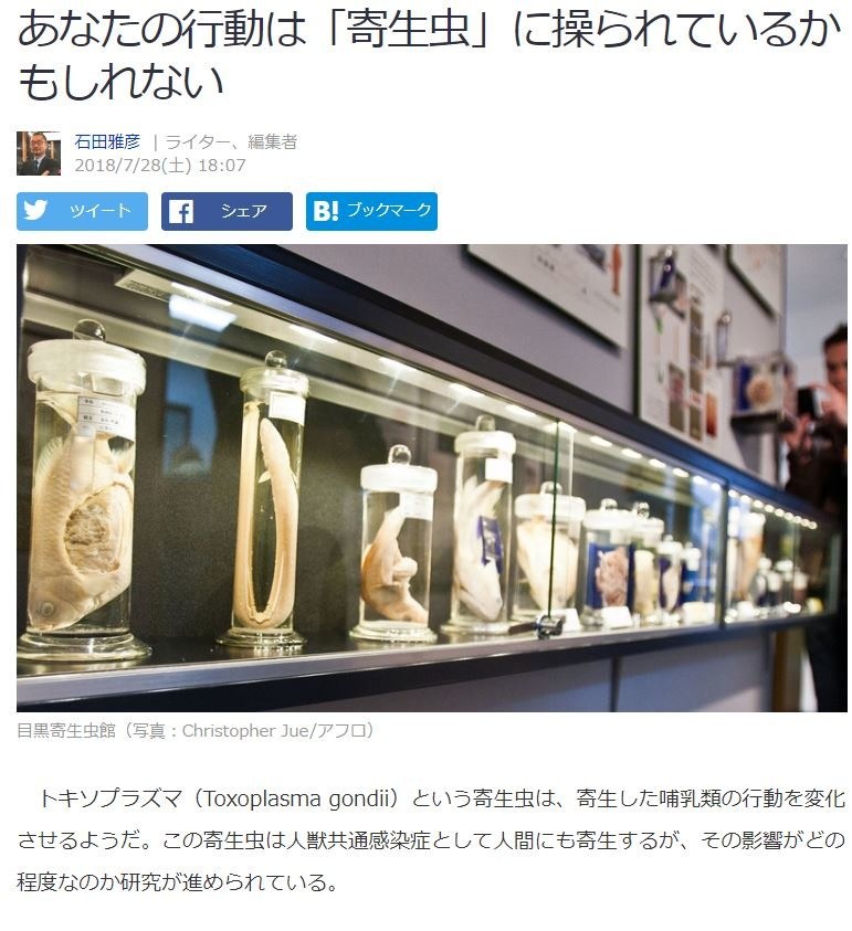 ※13:Petr Houdek, "Puppet Master: Possible Influence of the Parasite Toxoplasma Gondii on Managers and Employees." Academy of Manegement, Vol.31, No.1, doi.org/10.5465/amp.2015.0163, 2017