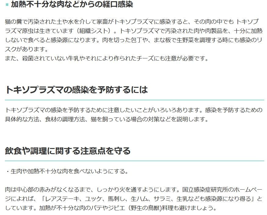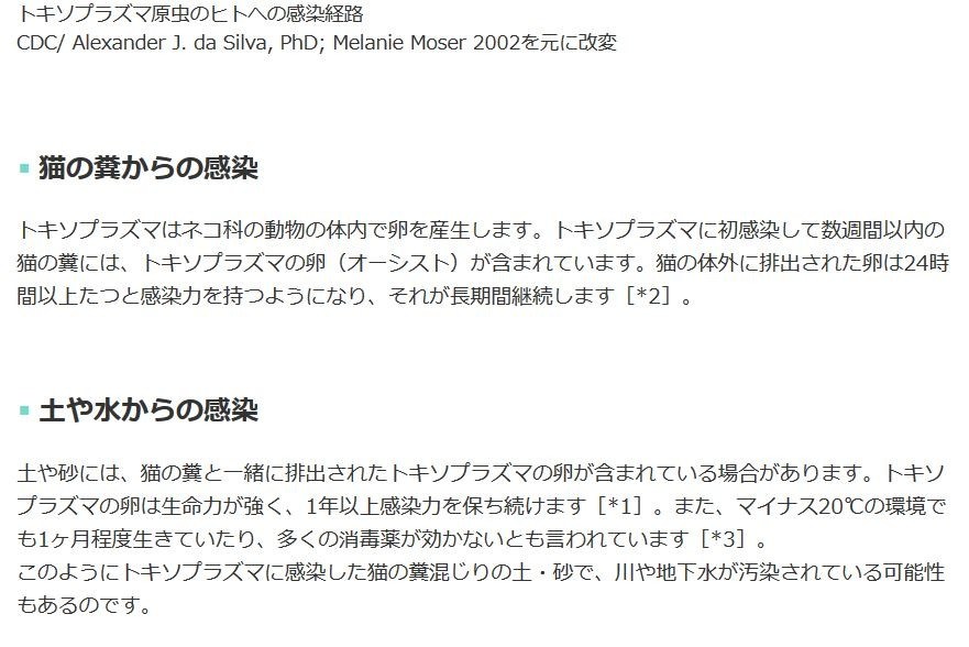 このようにトキソプラズマに感染した猫の糞混じりの土・砂で、川や地下水が汚染されている可能性もあるのです。