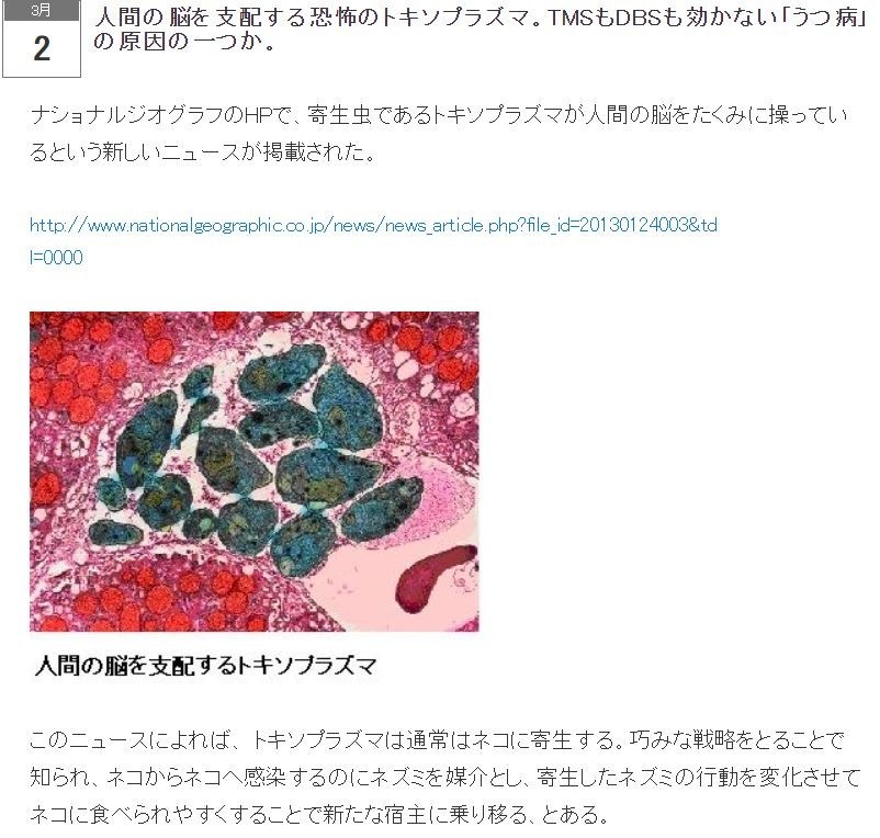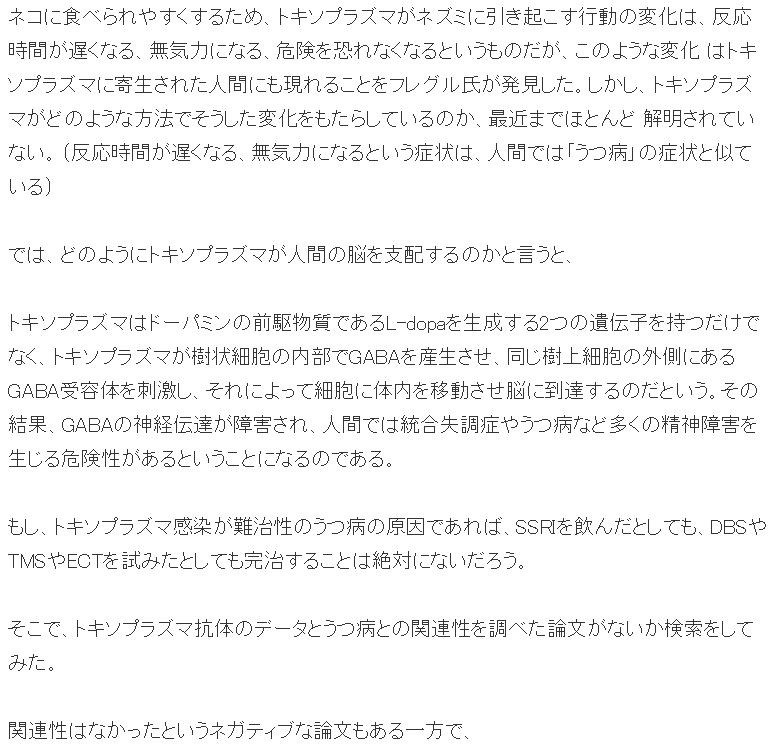 人間の脳を支配する恐怖のトキソプラズマ。TMSもDBSも効かない「うつ病」の原因の一つか。(統合失調症.思覺失調症)(双極性障害.躁鬱症)(トキソプラズマ.弓形蟲感染症.Toxoplasma gondii)①