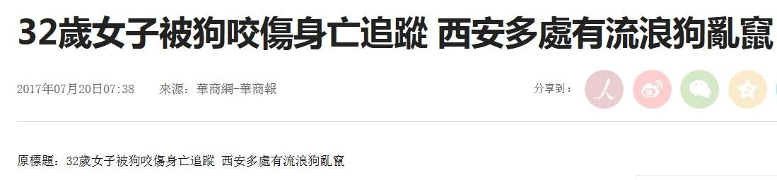 32歲女子被狗咬傷身亡追蹤 西安多處有流浪狗亂竄(狂犬病)①