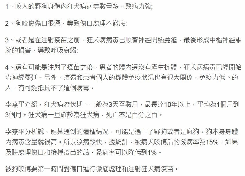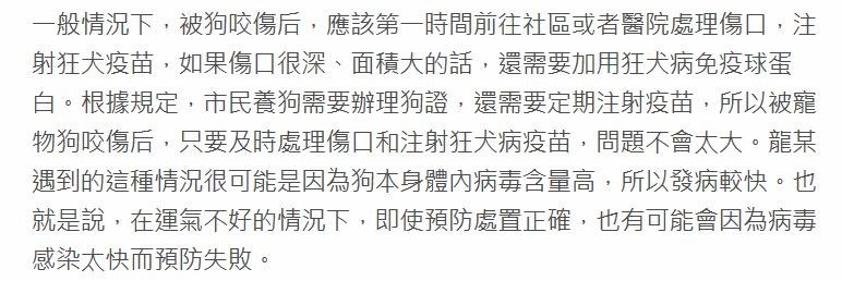 6月20日下午,龍某意外被狗咬傷,大家都以為只要及時注射狂犬疫苗就可以,沒想到,事情的發展讓人難以接受。