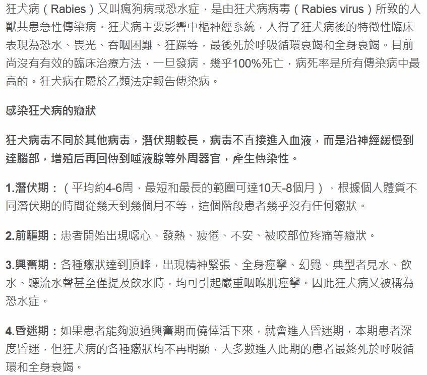 不過在日常生活中,我們還是不要對狂犬病掉以輕心,現在小林帶大家了解一下狂犬病有些什麼癥狀,如果不慎被咬傷需要怎樣預防呢?