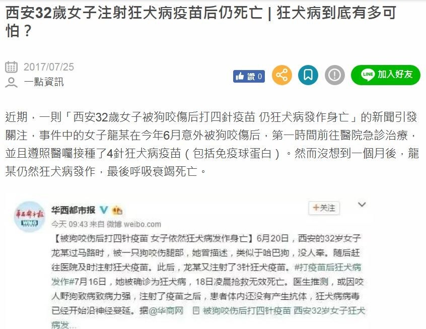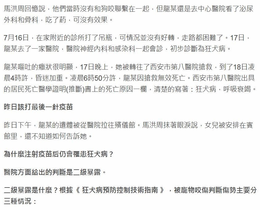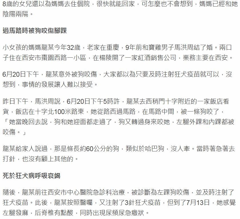 西安32歲女子注射狂犬病疫苗后仍死亡(狂犬病)②