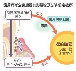 歯肉炎など歯周病も炎症を惹起する。歯周病自体は局所の炎症性疾患だが、CRPなどの炎症マーカーの上昇を招き、心血管イベントが増加することが知られている。歯周組織は、IL-6やIL-8などのサイトカインを産生することができる。