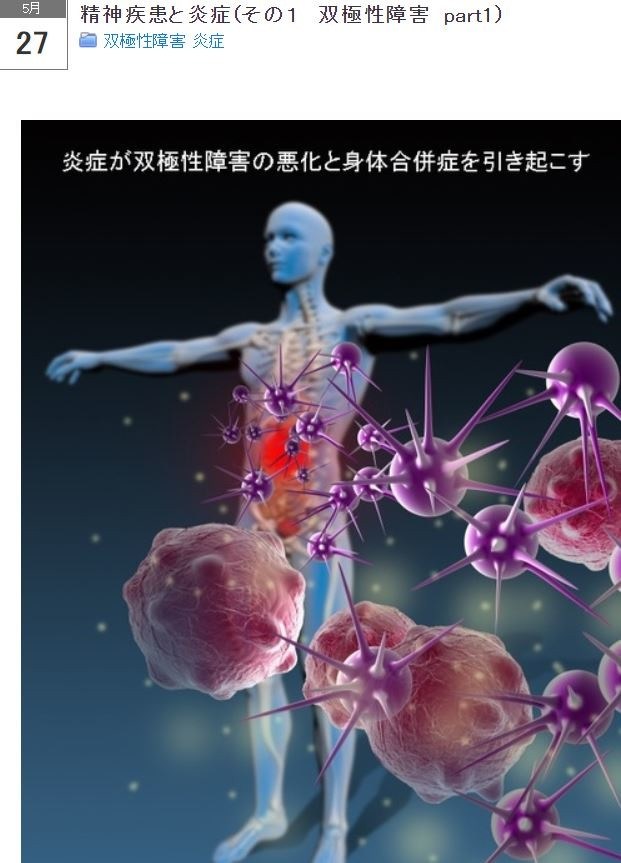 下の論文では、双極性障害はマルチな(精神と身体の)炎症性疾患であると提唱されている。双極性障害への従来の認識を変える時が来たのかもしれない。双極性障害は全身の炎症性疾患なのだと認識すべき時が来たのではなかろうか。双極性障害では身体合併症が高く、精神症状をコントロールするだけでなく、身体疾患を防止することも重要であり、そのためには炎症を十分に抑えておく必要があると言えよう。
