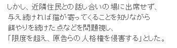 判決では、加藤九段の餌やりによって猫が住みつき、
