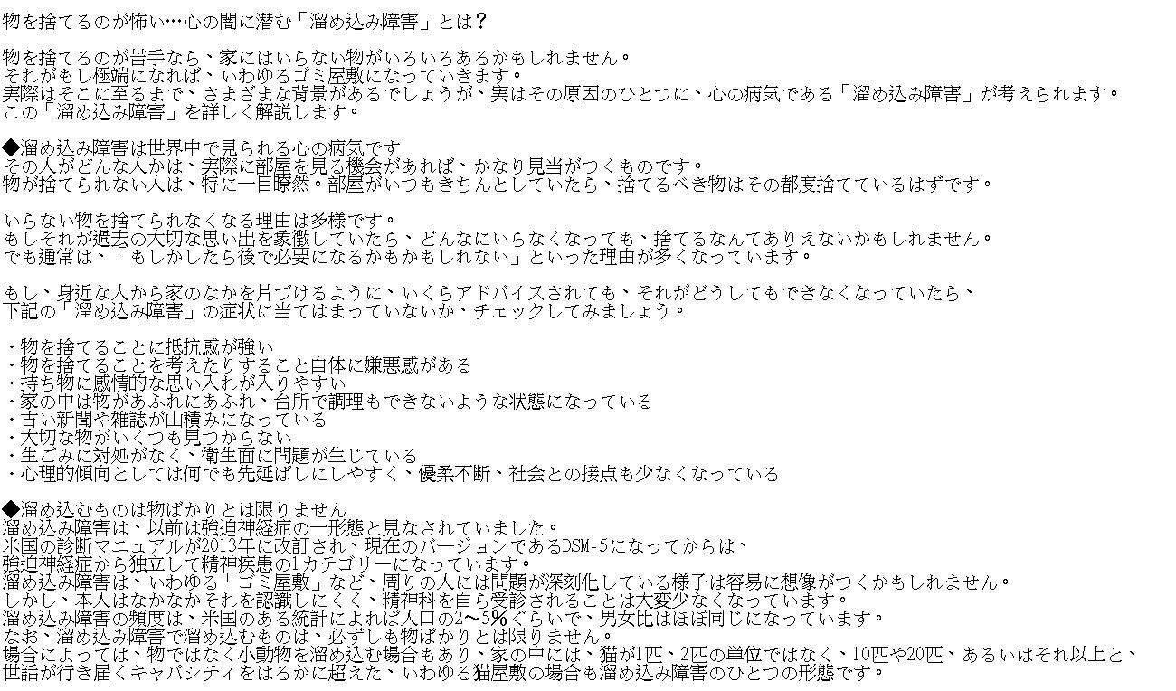 この「溜め込み障害」を詳しく解説します。