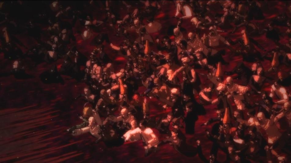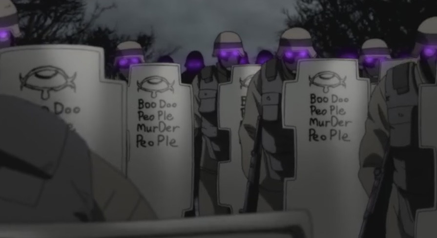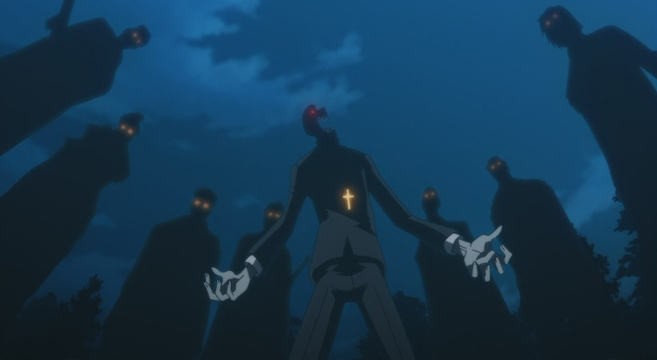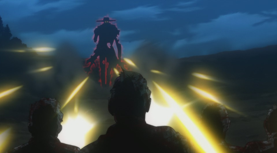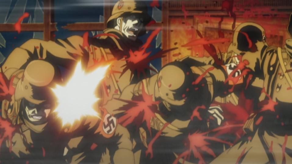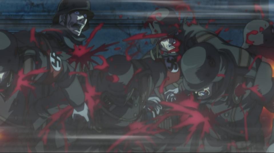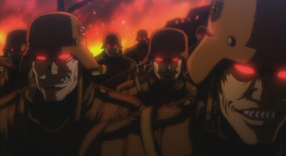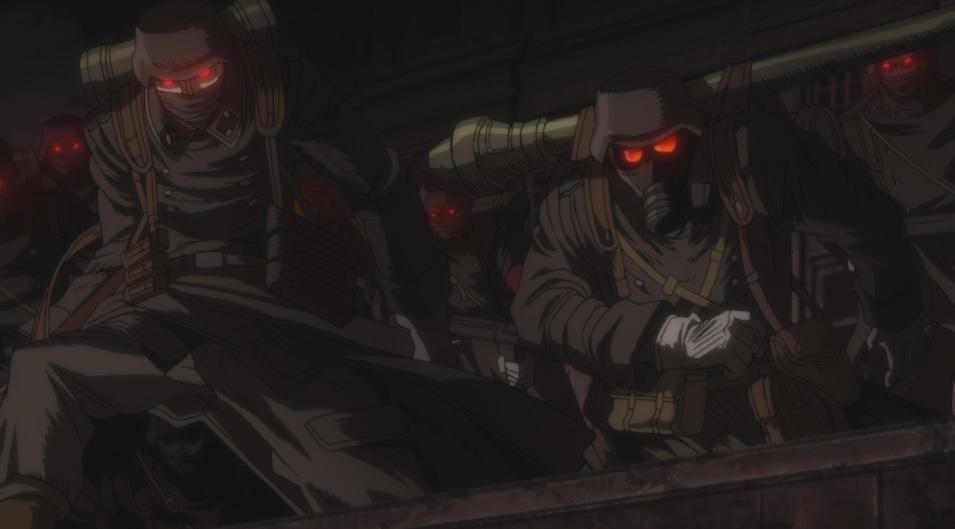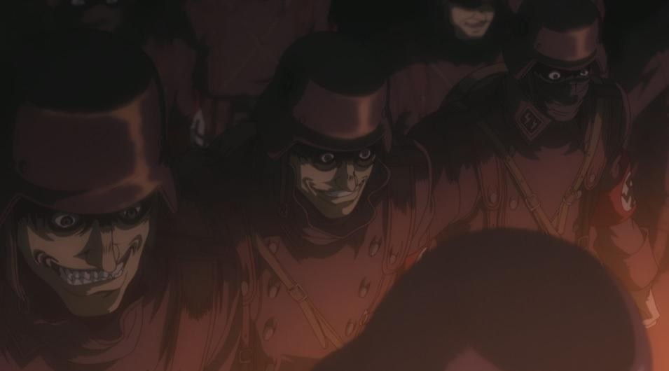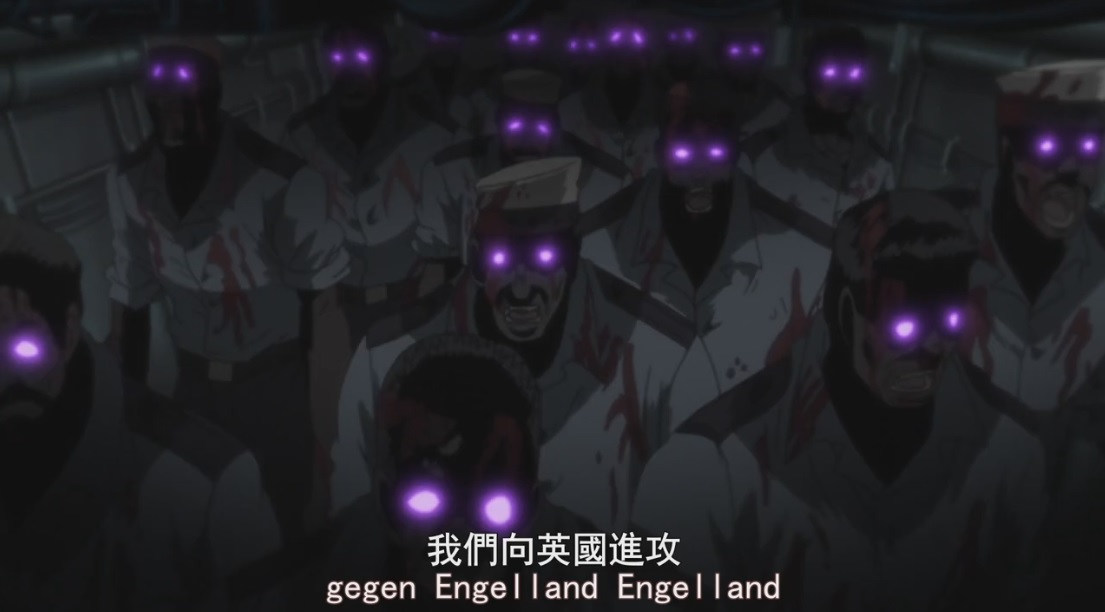 第四話中少佐和千人多的吸血鬼組成最後的大隊終於正大光明地出現了!
