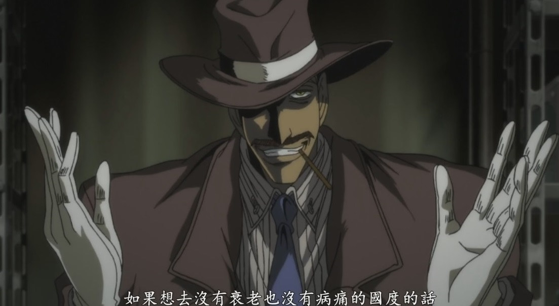 後來才發現少佐除了腦部之外,其他部分全部變成機械化,因此他能以人類的身份長生不死。