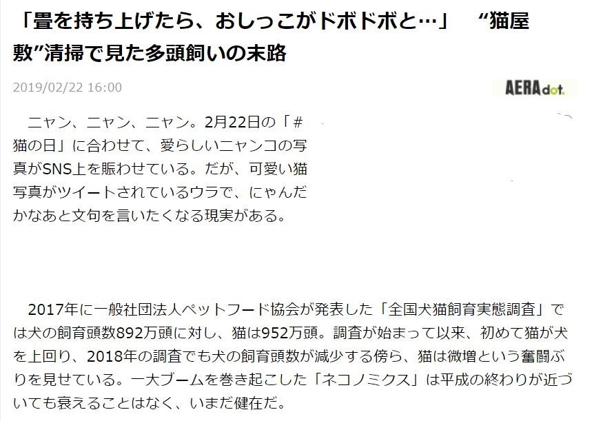 ニャン、ニャン、ニャン。2月22日の「#の日」に合わせて、愛らしいニャンコの写真がSNS上を賑わせている。だが、可愛い写真がツイートされているウラで、にゃんだかなあと文句を言いたくなる現実がある。