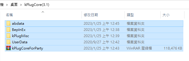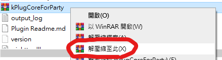 4.節壓縮後又會跑出一個壓縮檔"kPlugCoreForParty"對著他右鍵"接壓縮至此"