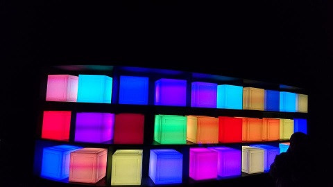有一個teamLab光廊的走道出口處還有觸碰螢幕可以調整光廊的特效