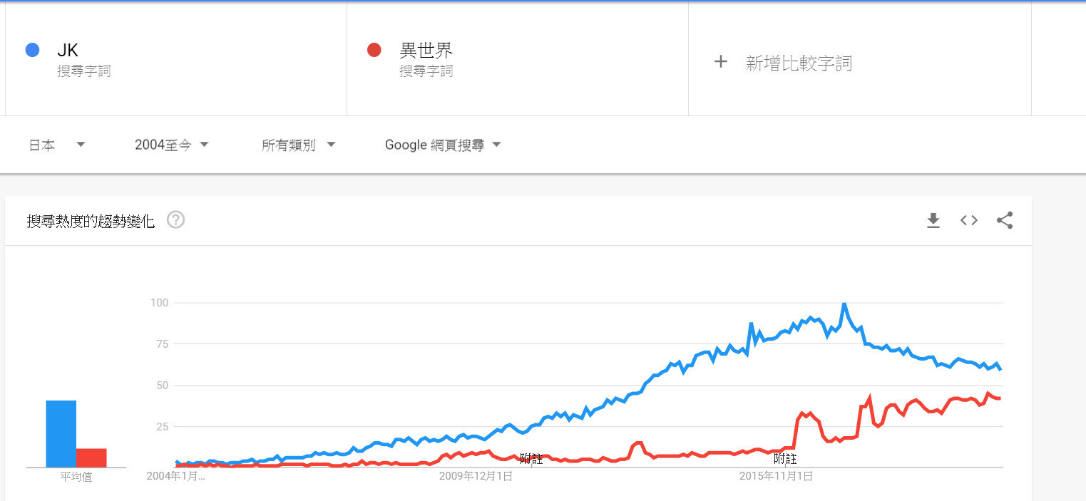 JK從網路引擎數據一下研究就能發現它有多熱門