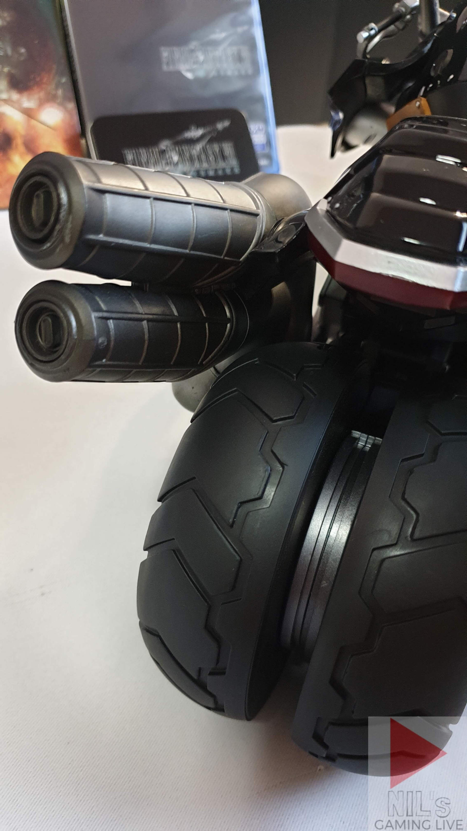 然後說明書上有趴姿抓握把騎車的圖示,但我家的克勞德腰桿硬得很,根本彎不下去,導致無法抓到握把;另外國外開箱有上色問題發生,筆者這套也有......然而幸運的是並沒有YT上開箱影片的慘況,僅少許地方"被舊化",個人認為算及格。