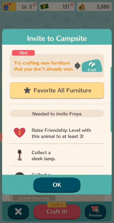 島上的動物都有各自特別喜好的傢俱,如果能夠依照動物們的喜好來布置傢俱的話,便能夠提高他們來營區遊玩的機會,並進一步與他們互動提高友好度。