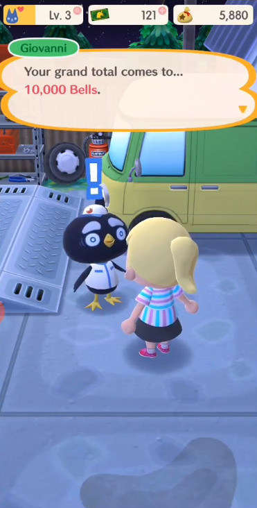 而《動物之森》系列經典的貸款系統在這裡自然也是不能錯過,當我們第一次進行車內空間擴張時,NPC 並不會特別告訴你這需要花錢,而是在擴張完成後才告知我們,目前已經背負了一筆 10000 元的貸款。