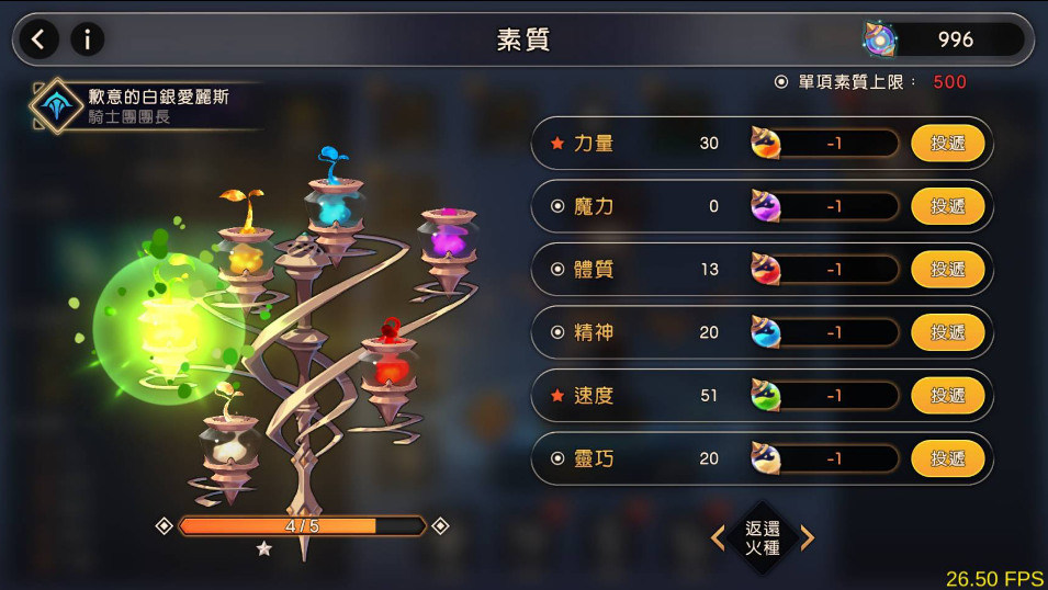 騎士的養成的特色我個人認為有兩點:第一是玩家可以自由配點素質,投遞火種選擇自己想養成的路線。第二是玩家可以收集書頁,在知識系統中對騎士進行不同的加成。這兩點讓騎士的養成相當自由化,因此就算同一個職業的騎士還是會有差異化!