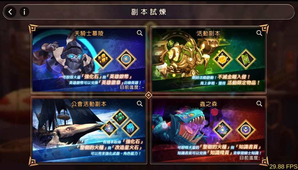 英雄有不同的技能與素質,可以透過等級提升、星等提升、技能提升來提高整體的強度。英雄算是遊戲中比較需要培養的一部分。
