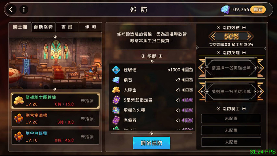 另外巡防系統也算是比較單純、適合輕度玩家的玩法。需要派遣騎士與英雄參加巡防,巡防結束後可以獲得對應的獎勵。