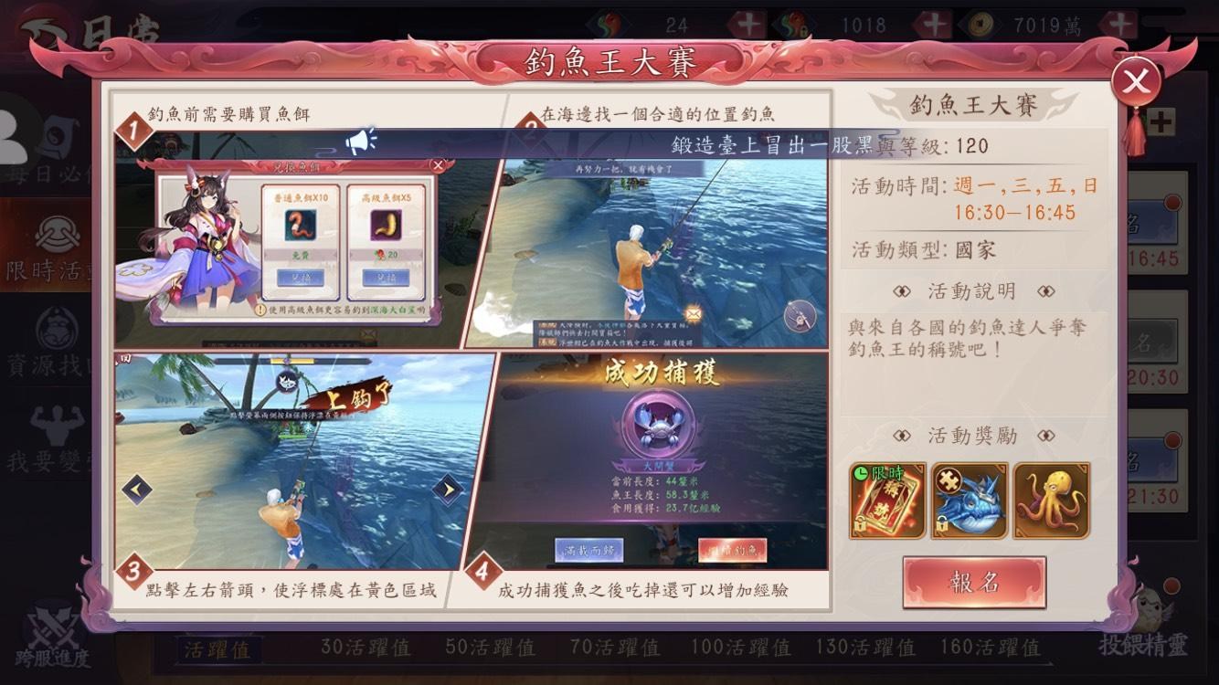 另外還有釣魚、1v1競技對戰、競技塔等等活動可以參加,雖然活動都有限定時段才能參加,但多數都集中在晚上,因此就算是上班族也不用擔心,還是有機會參加到活動喔!