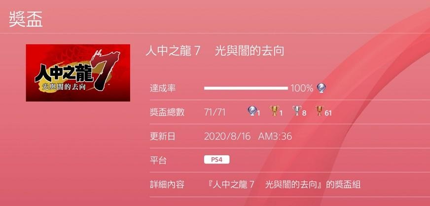 63.人中之龍7 光與闇的去向: 獲得所有獎盃 [白金]