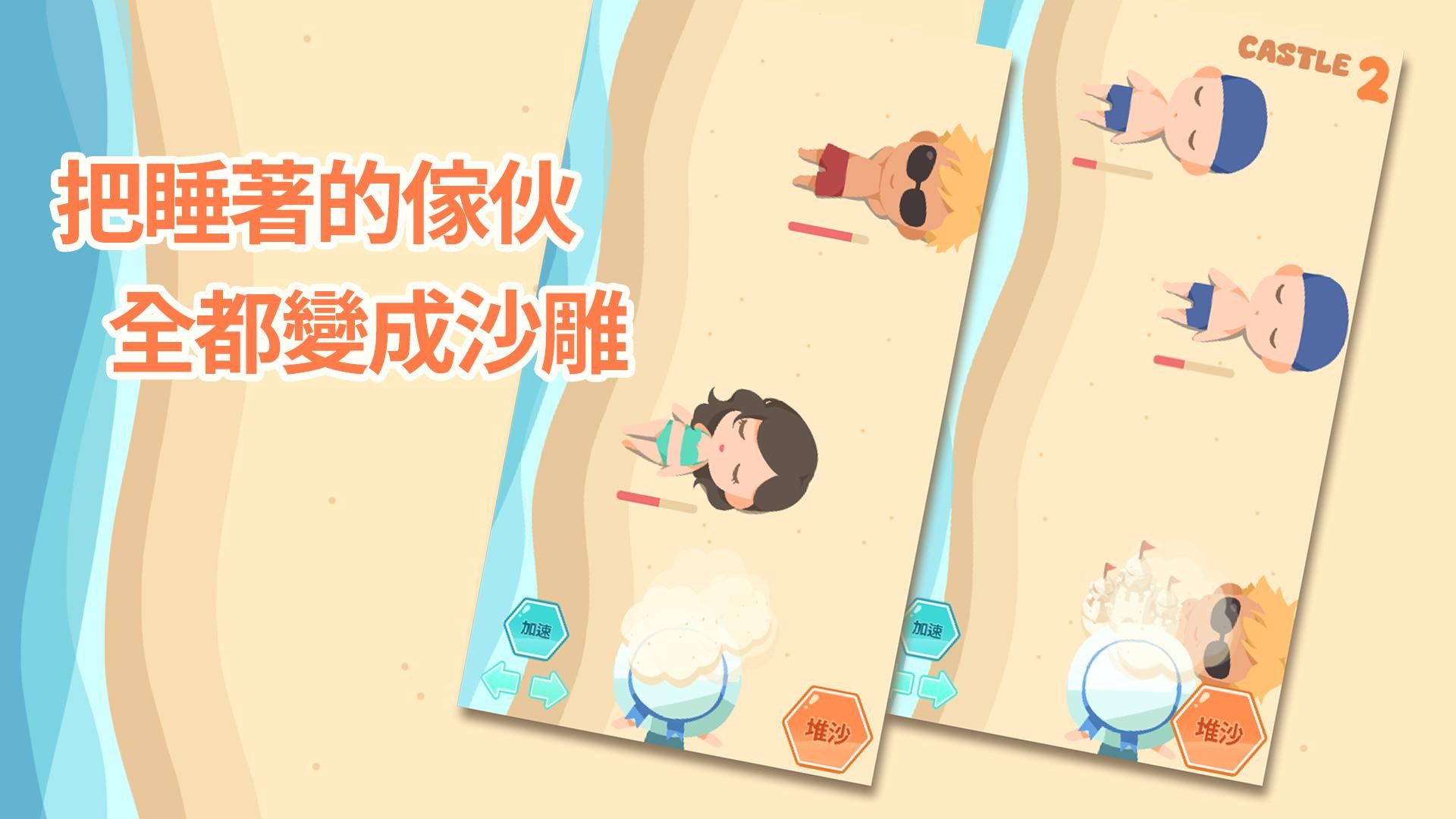 空白鍵 - 堆沙,對熟睡的目標使用,連續點擊三次以製作完整沙堡