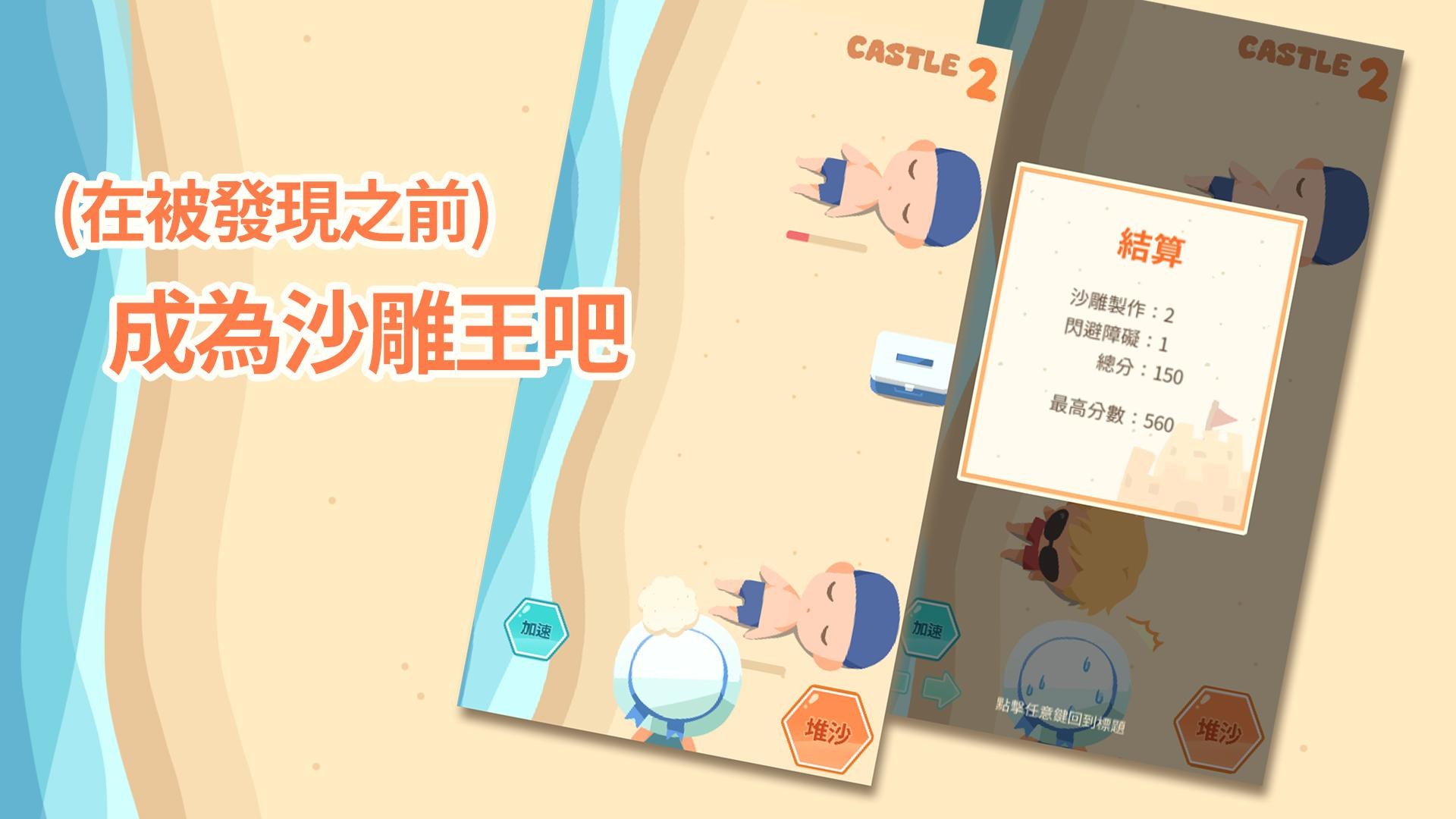在不被目標發現的情況下製作出更多沙堡,同時閃避障礙物