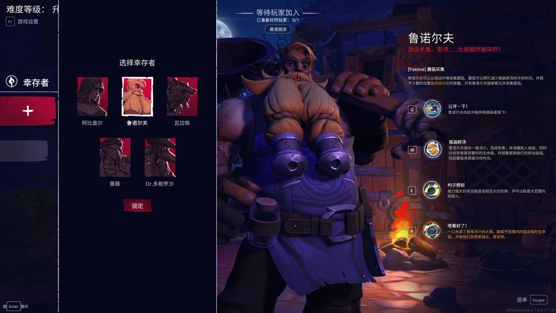 這邊也簡單介紹我自己對五名角色的看法。【瘟疫醫生】是生存界達人、新手與單人玩家的破台好夥伴、一神帶三坑的鐵板角色