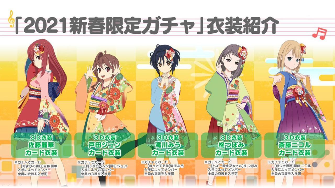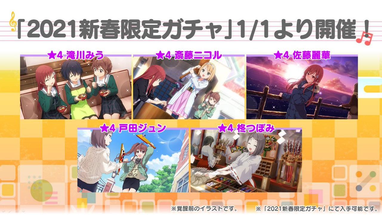 遊戲將於明年元旦 1/1 推出「2021新春限定轉蛋」,卡池裡將新增五張4星新年卡片,取得卡片的同時可同時獲得新服裝。