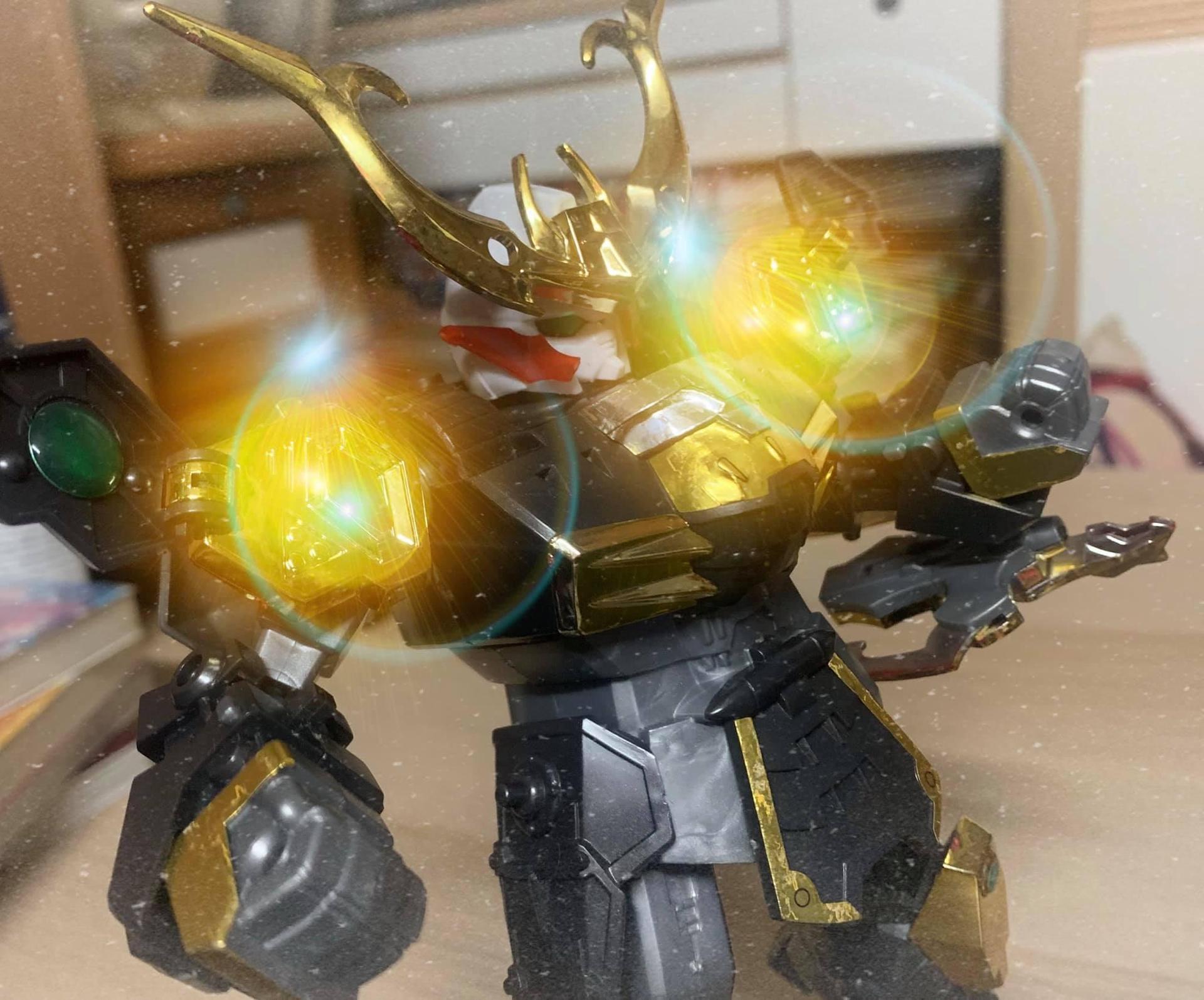 魔殺駆 和 咒術師道光 合體後成功巨大化(模型背後更付有六柄長劍,能模仿做出必殺技時的姿態)