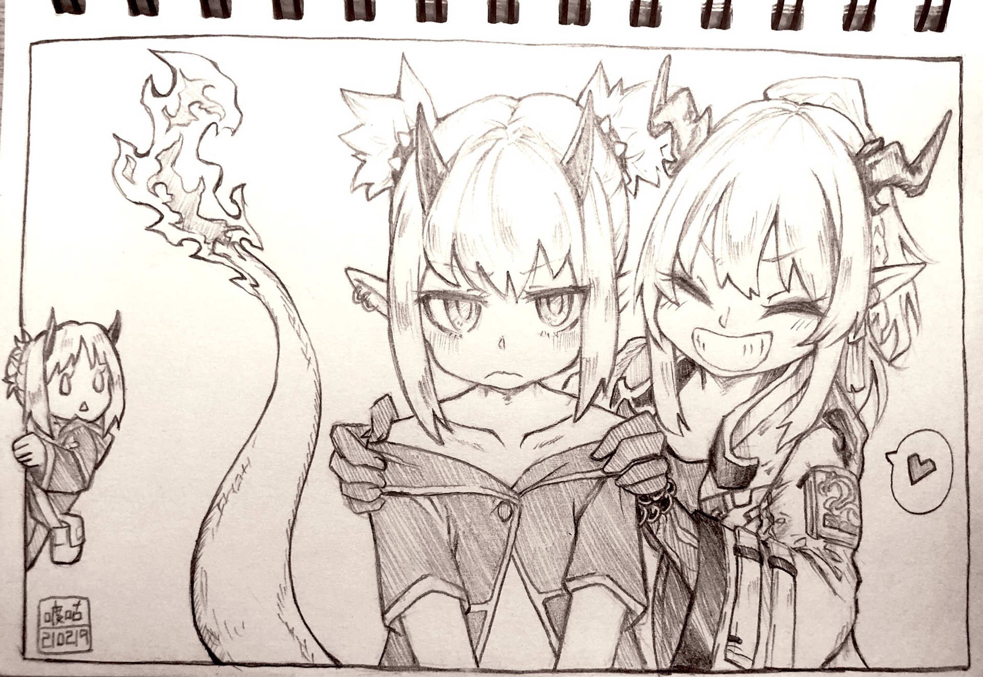 年可愛,所以特地畫了一張,順便把炎熔也畫進來了