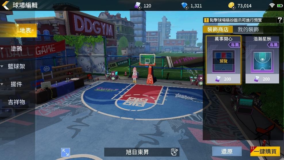 而且遊戲中還能自定義球場,選擇球場的地表樣貌、塗鴉樣式、籃球架、籃球框、籃板、周圍擺件跟吉祥物,打造出屬於自己獨一無二的專屬球場,這點也是其他籃球遊戲沒有的,大多都只能選擇系統內建的球場,甚至連球場都是系統指定的,沒有其他變化。
