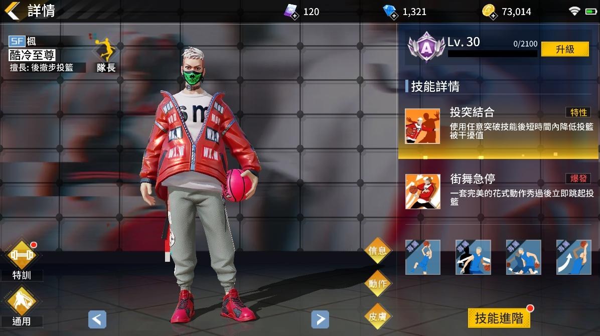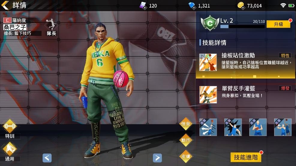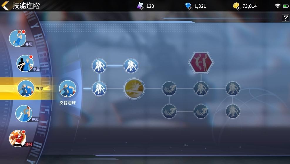 每個角色的專屬技能跟爆發技能都可以透過技能進階來強化效果,根據自己常用跟需要的來進行加強,技能進階需要通用進階卡,可以在道具商城跟活躍商城中獲得,每一次進階都會提升對應的屬性能力,不過這個要注意的是,提升的屬性能力是只有在指定技能發動時才有效果,例如進階交替運球可以提升柔韌,但這個柔韌效果也只有在交替運球時才有。