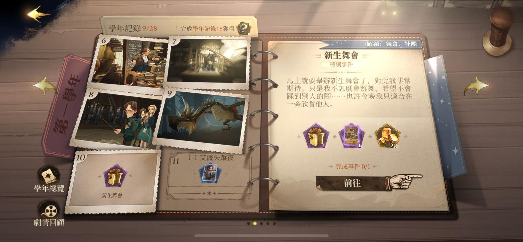 透過學年紀錄帶領玩進入遊戲的劇情中