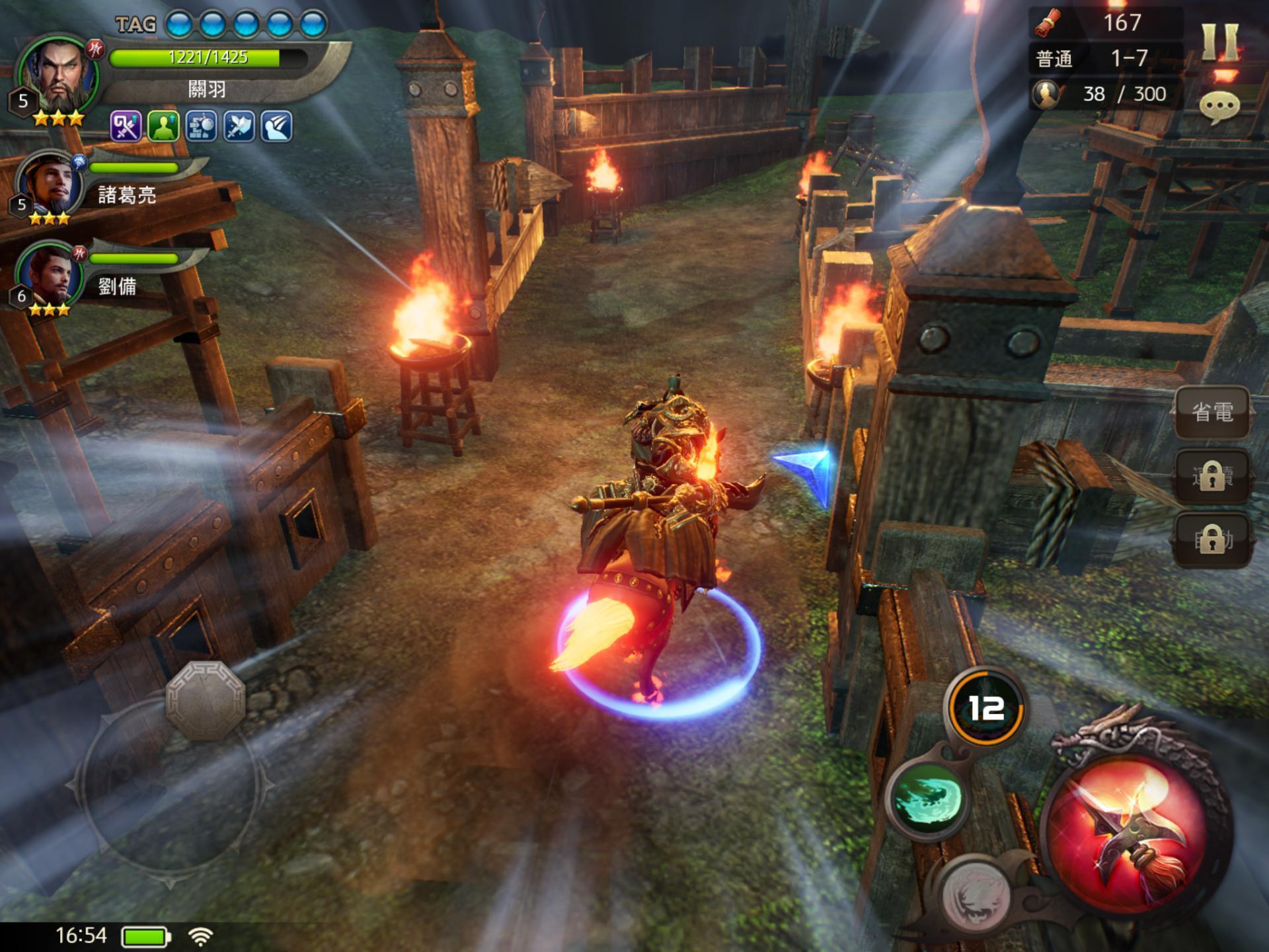 遊戲在戰鬥節奏設定上相當明快,可以很簡單就上手。武將擁有二招主動技和一招追蹤技能,追蹤技能在一定的普攻次數下會觸發可使用,再搭配上陣的武將可以自由切換上場連招,而且有些技能效果還能存在場上一陣子,讓戰鬥及連段有更多變化。關卡可不只單純的把敵人殺光就好,會有任務條件可以額外獲得星星評價,使得玩家對於上陣關卡會有不少選擇,再加上有不同難度的設定,以及達成的獎勵,每次戰鬥都能有不同挑戰。此外,玩家在轉換戰場時,還會自動快速上馬騎乘,使整場戰鬥充滿了速度感。